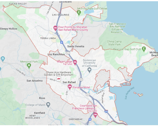 Nếu địa chỉ của bạn nằm ngoài ranh giới thị trấn hoặc thành phố được Google lập bản đồ (xem đường viền màu đỏ trong hình trên), bạn có thể sẽ gặp khó khăn hơn trong việc xếp hạng đối với người tìm kiếm trong thành phố đó hoặc đối với các tìm kiếm có chứa tên thành phố đó trong ngôn ngữ tìm kiếm. Một lần nữa, SEO đôi khi có thể khắc phục nhược điểm này, và ở các vùng nông thôn có mức độ cạnh tranh thấp, một doanh nghiệp có thể xếp hạng trên một khu vực địa lý rất rộng lớn vì đó là một trong số rất ít lựa chọn. Tuy nhiên, trong một số trường hợp, doanh nghiệp có thể phải di chuyển vị trí của mình vào trong ranh giới thành phố để cân bằng sân chơi và được đối tượng mục tiêu tìm thấy.