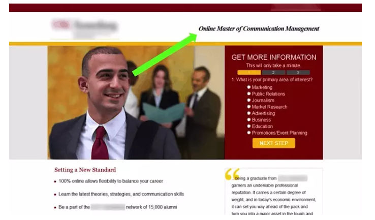 Ví dụ, Oli đã làm việc với một khách hàng giáo dục để tăng tỷ lệ chuyển đổi cho trang đích của họ. Trang đích ban đầu trông như thế này: