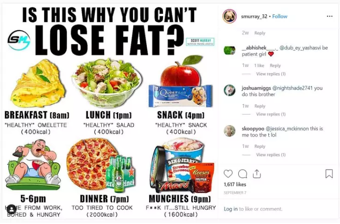 Một ví dụ điển hình cho điều này có thể thấy trên Instagram của Scott Murray . Trong nhiều năm, Scott đã tránh đăng tải về cuộc sống cá nhân. Anh ấy chỉ chia sẻ những meme và infographic hữu ích về dinh dưỡng như thế này: