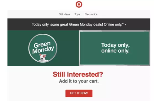 Đây là một ví dụ từ Target, họ đã gửi cho tôi một email sau khi tôi duyệt qua một số sản phẩm trên trang web của họ và sau đó rời đi.