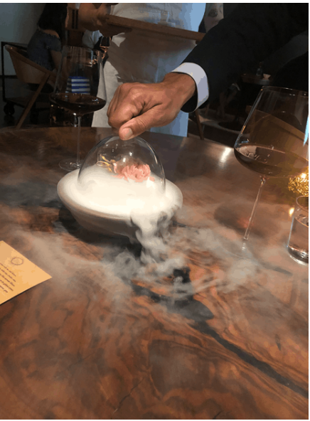 "Nhà hàng Michelin Star", anh ấy thú nhận. Thực ra, anh ấy và bạn gái vừa dùng bữa tại Atelier Crenn ở San Francisco. "Trời ơi, đó là bữa tối tuyệt vời nhất mà chúng tôi từng có. Một bữa tiệc thịnh soạn cho chúng tôi."