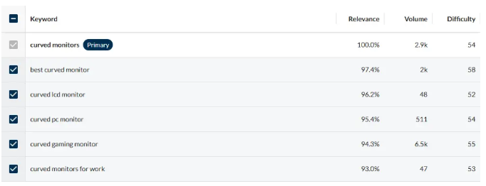 Đối với bài tóm tắt mẫu về "màn hình cong", tôi đã chọn PCMag (một trong những công ty chị em của Ziff Davis). Giờ đây, bạn có thể xem những trang nào mình đã xếp hạng cao về chủ đề này và quyết định xem đã đến lúc viết lại hay hợp nhất một số nội dung hiện có.