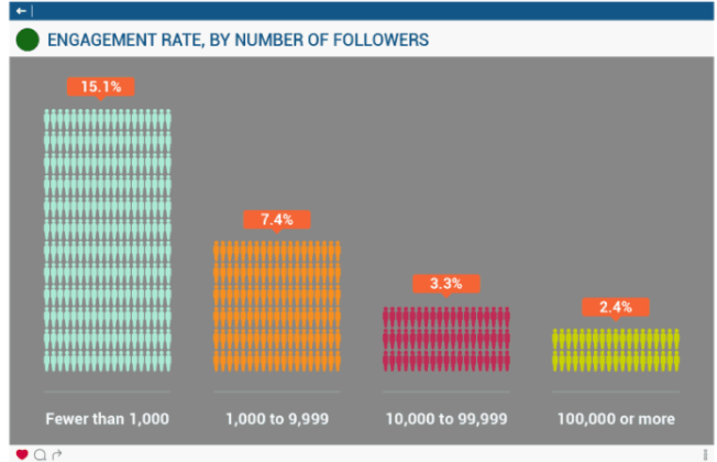 Mắt bạn không đánh lừa bạn đâu. Những người có sức ảnh hưởng với lượng khán giả nhỏ hơn thường có tỷ lệ tương tác tốt hơn.
