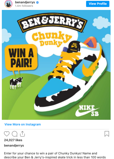 Hãy xem bài viết bên dưới, một sự hợp tác tuyệt vời giữa Nike và kem Ben & Jerry's. Mặc dù cả hai thương hiệu đều không cạnh tranh với nhau, nhưng đây là một ví dụ tuyệt vời về hình ảnh của một chiến dịch hợp tác.