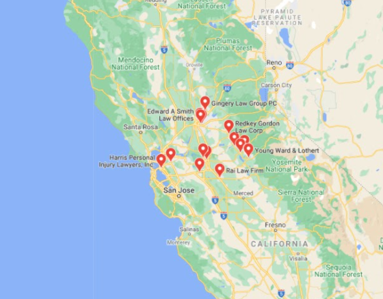 Đối với tìm kiếm “luật sư thương tích cá nhân tại Angels Camp”, hãy lưu ý khu vực được hiển thị trên bản đồ ở mức độ thu phóng tự động đi kèm với kết quả Tìm kiếm Địa phương: