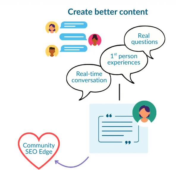 Bạn cũng có cơ hội tạo nội dung với khách hàng, với đối tượng mục tiêu của mình. Vì vậy, sự hợp tác về nội dung và ý tưởng này, vốn rất quan trọng trong các cộng đồng, sẽ giúp mở rộng khả năng hiển thị. Đó là lợi ích thứ hai tôi dành cho bạn khi cộng đồng là một lợi thế SEO.