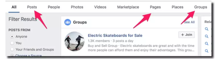 Ví dụ, trong tab trang, tôi không thể tìm thấy nhiều trang thú vị vì hầu hết đều liên quan đến công ty hoặc các trang chuyên biệt nhỏ.