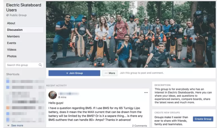 Giờ đây, bạn chỉ cần ngồi xuống và duyệt qua các bài đăng và bình luận hiện ra. Hãy xem nhóm "Người dùng ván trượt điện" mà chúng tôi đã tìm thấy trên Facebook: