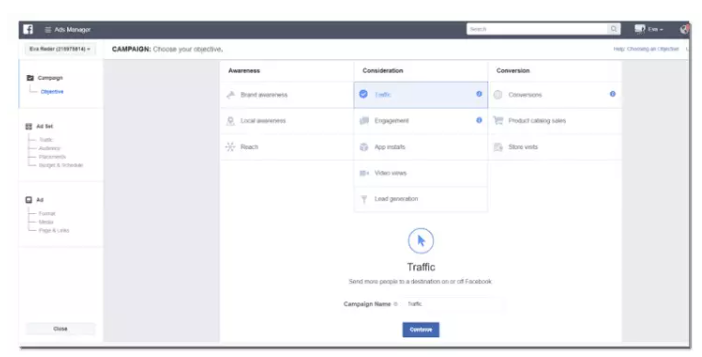 Chúng tôi gọi chúng là bài đăng tối vì chúng không hiển thị trên trang của bạn mà xuất hiện dưới dạng quảng cáo trên bảng tin của những người bạn nhắm mục tiêu. Bạn có thể dễ dàng tạo quảng cáo từ nền tảng quản lý quảng cáo trên Facebook. Chúng tôi chọn "lưu lượng truy cập" làm mục tiêu, để thu hút càng nhiều người dùng càng tốt đến nội dung trên trang web của chúng tôi.