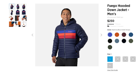Mặc dù những bức ảnh chụp tại studio này rất hữu ích, nhưng người mua cũng có thể muốn xem chiếc áo khoác trong môi trường tự nhiên. Vì vậy, người bán có thêm một mục ảnh ở cuối trang, nơi tập hợp những hình ảnh do khách hàng tạo ra, vừa đẹp vừa đầy tham vọng.