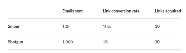 Giống như Noam Judah từ Digital Rescue Web Design Agency đã nói: "Nếu bạn dùng chiến thuật shotgun, mọi người sẽ đánh dấu email của bạn là thư rác, hoặc họ sẽ nhớ tên bạn (đặc biệt nếu họ nhận được nhiều hơn một email mẫu từ bạn). Sau đó, bạn sẽ bị loại - họ sẽ không bao giờ làm bất cứ điều gì bạn yêu cầu."
