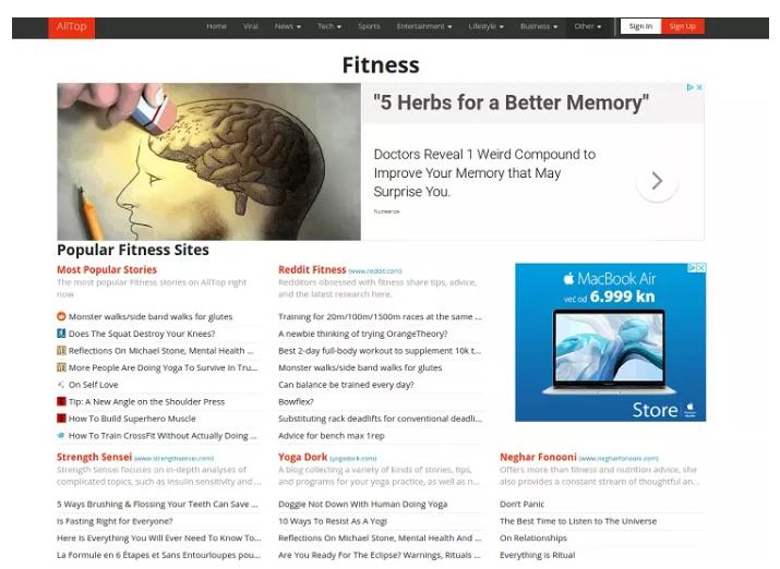 Một cách tốt khác để tìm kiếm khách hàng tiềm năng là truy cập AllTop.com . Bạn sẽ tìm thấy rất nhiều nội dung trên AllTop về mọi chủ đề, từ thể hình đến Công thức